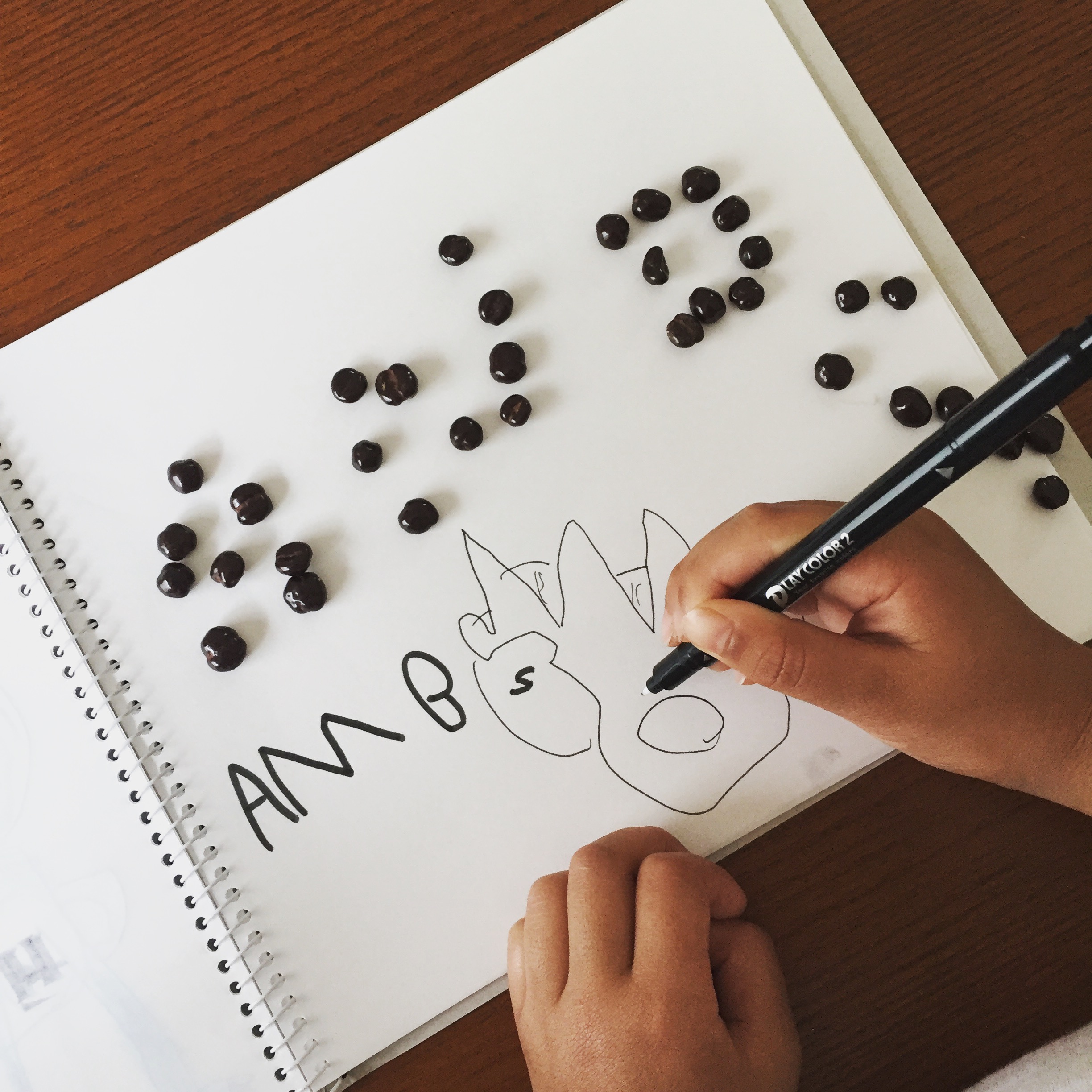 戻ってみたら、麦チョコの文字ができてた。